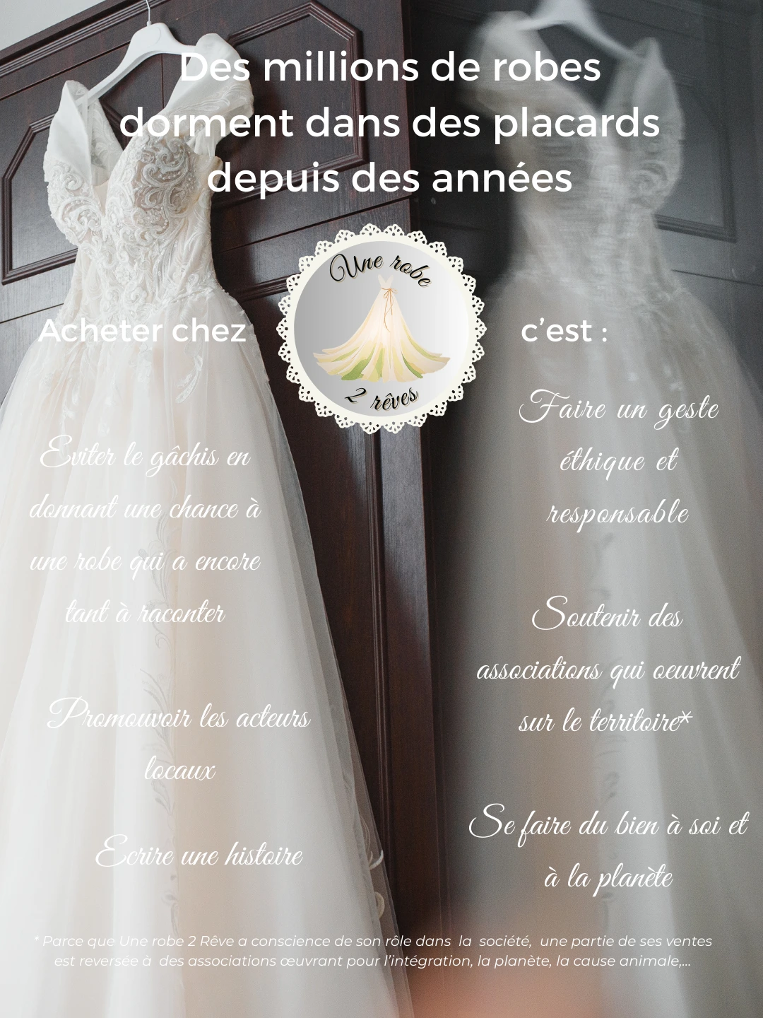Et comme pour toute vente chez Une Robe 2 Rêves, une partie des gains est reversée au monde associatif.